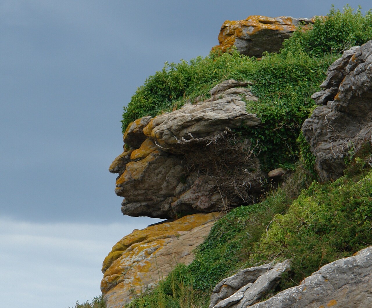 In the case of the Apache Head Rocks photo above, the face is wholly imaginary. It exists only in our minds. And from a different angle it doesn't look like a face at all. The tendency to envision faces in things is known as Facial Pareidolia. Entering the term in a search engine will yield many more examples.